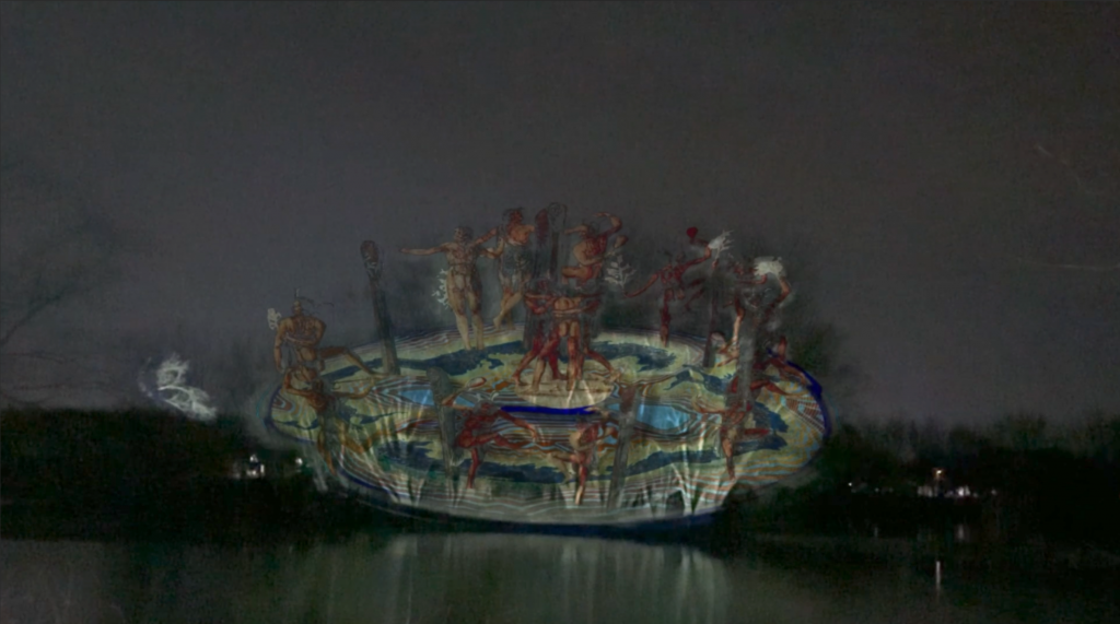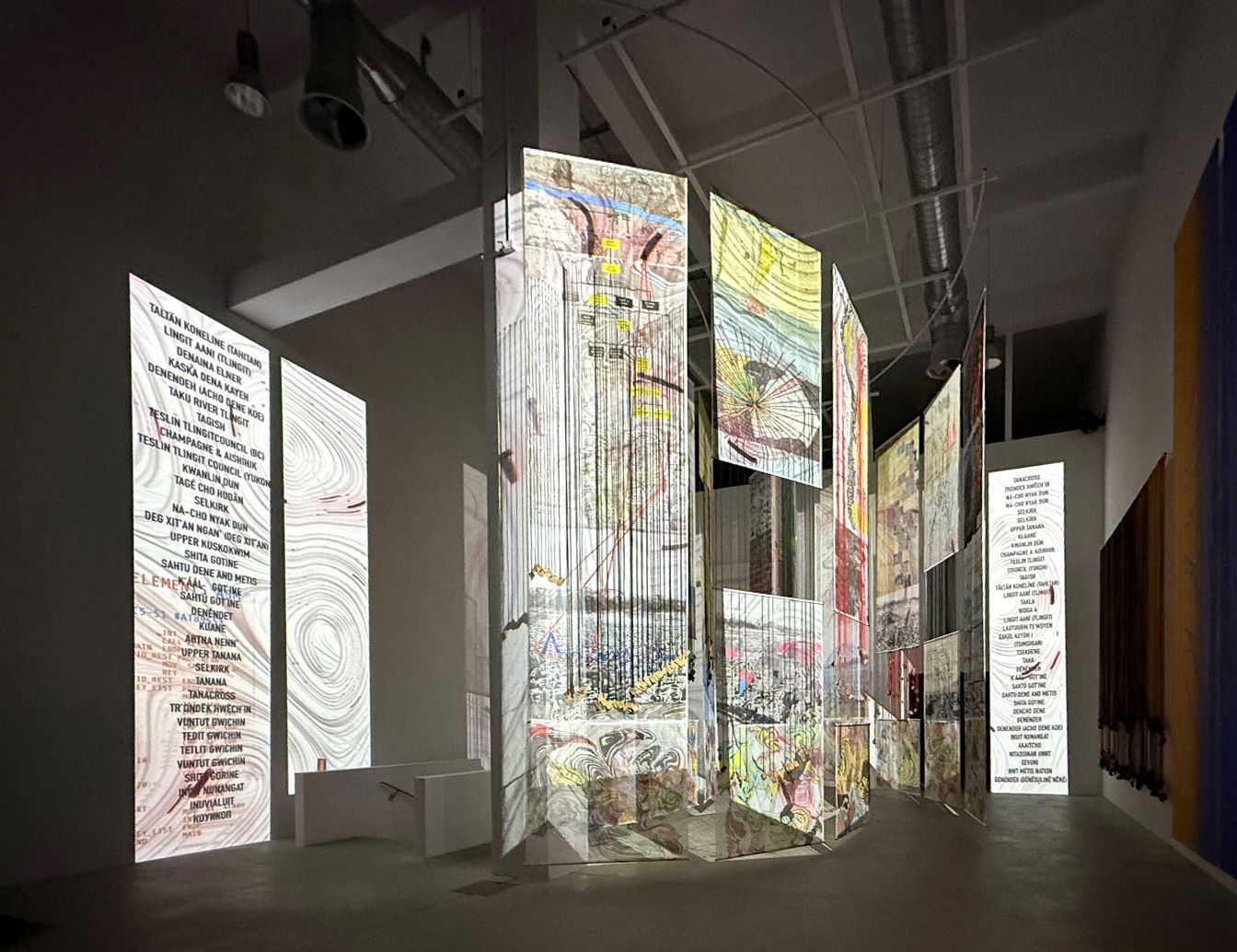 The project proposes an innovation with roots: a “technology of listening.” By integrating the concept of Suma Qamaña (Buen Vivir / Good Living) and the Quipu recording system, the work acts as a bridge between millennia-old cosmologies and today’s demands for inclusion, reclaiming territory not as a resource to be extracted, but as a living body in need of healing. To that end, the installation activates a counter-cartography that carries a message of repair from Mapuche machi Millaray Melinao through video mapping, creating a symbolic bridge between the North and South of the continent by weaving together times and territories connected through other paradigms and ways of knowing—paradigms the work honours and invites audiences to experience.